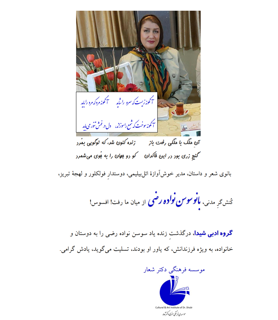 درگذشت بانو سوسن نواده رضی: نویسنده و شاعر تبریزی